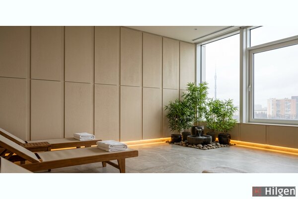 В помещениях с влажностью выше 60% (кухни, зоны отдыха с кофемашинами) используют панели с влагостойким покрытием. Коэффициент звукопоглощения таких панелей на 5-10% ниже — количество увеличивают пропорционально.